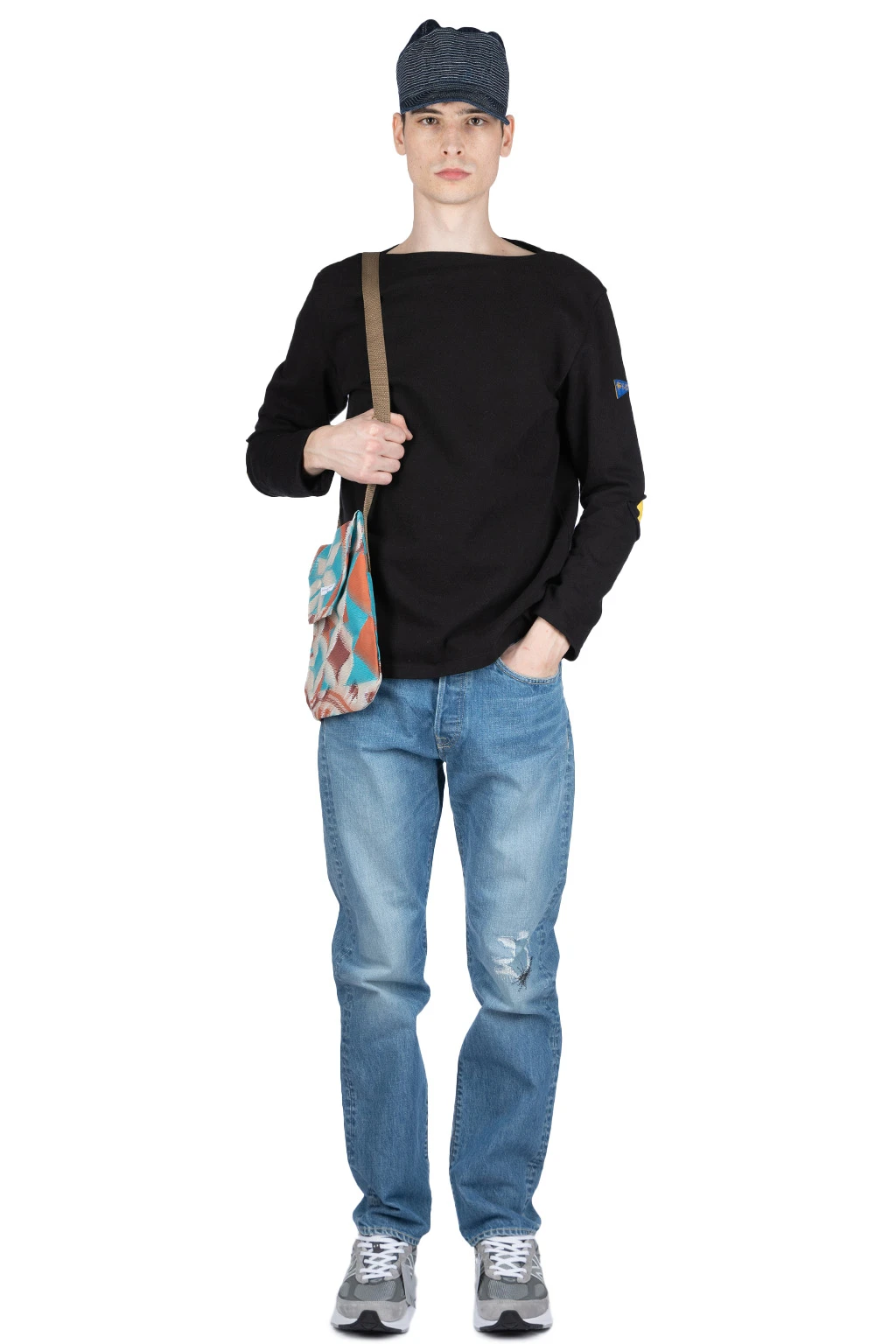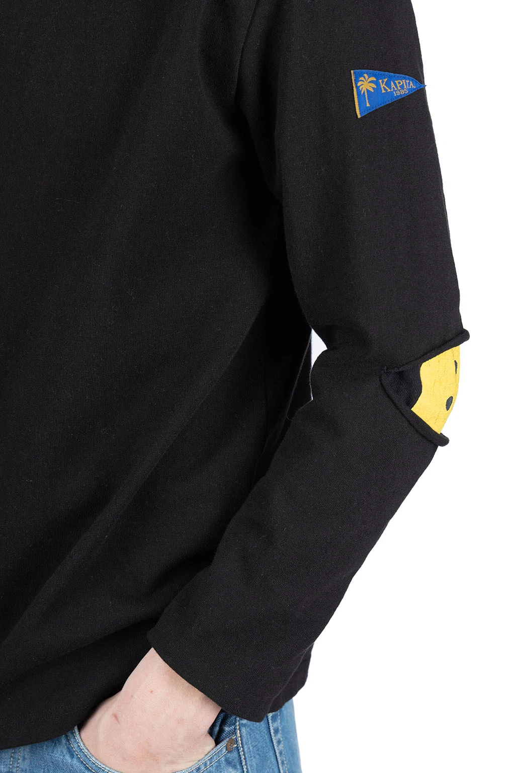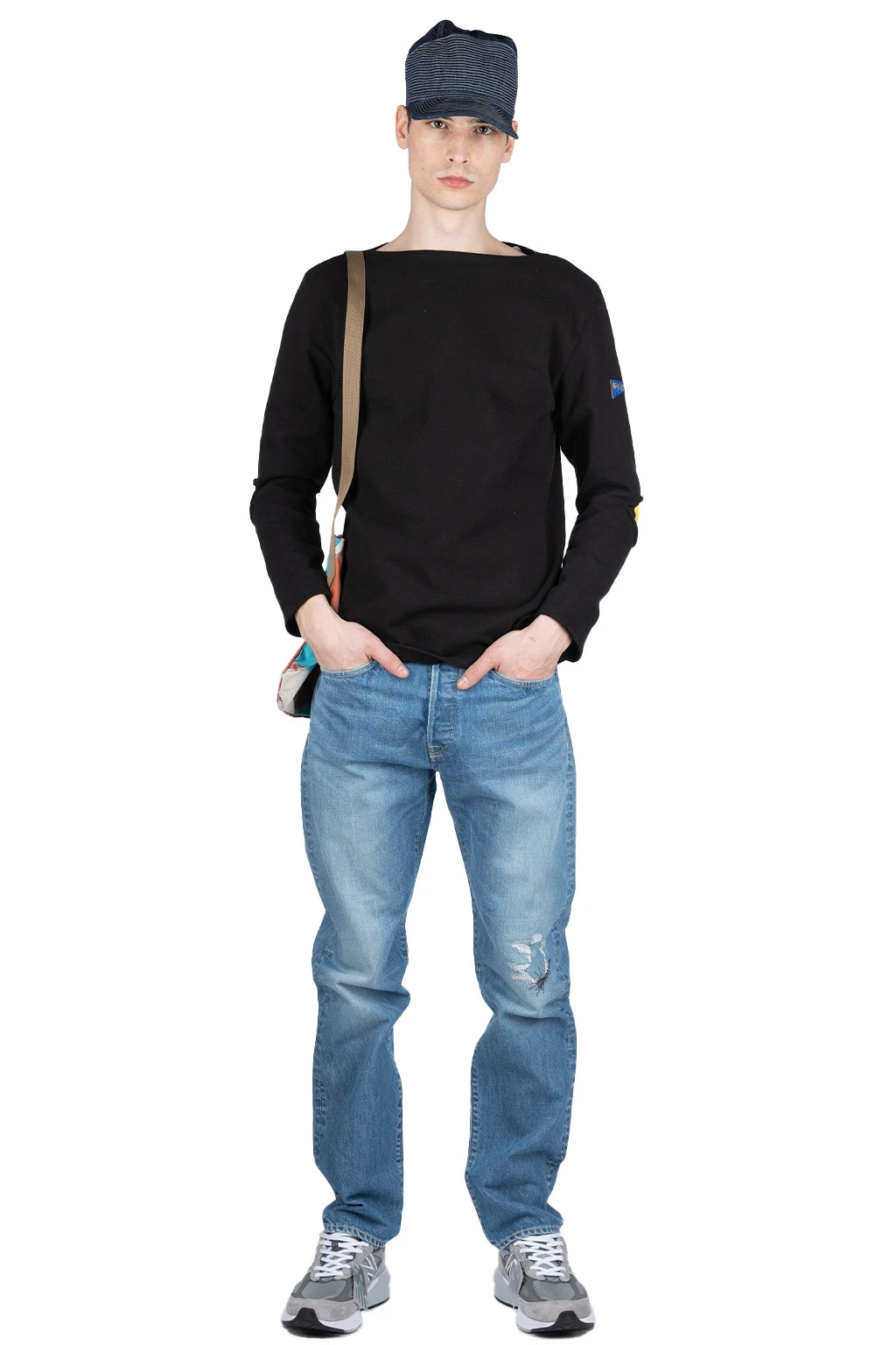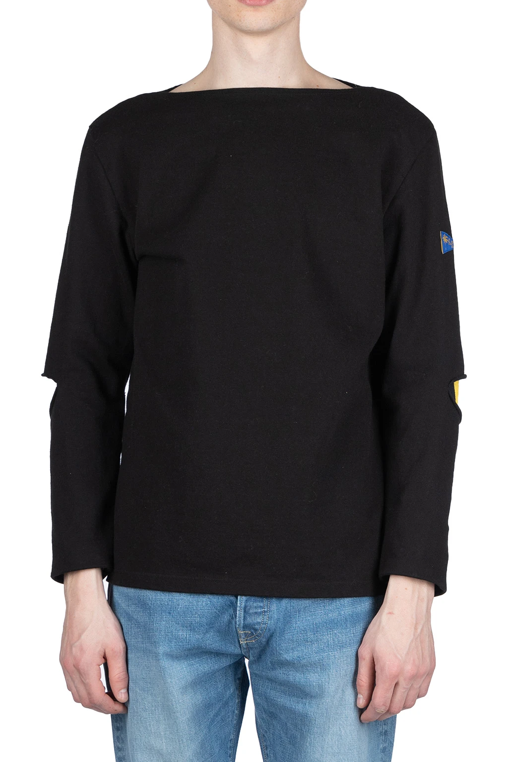 16/- Densed Jersey Elbow-Rip Boatneck Long Sleeve T – Black
