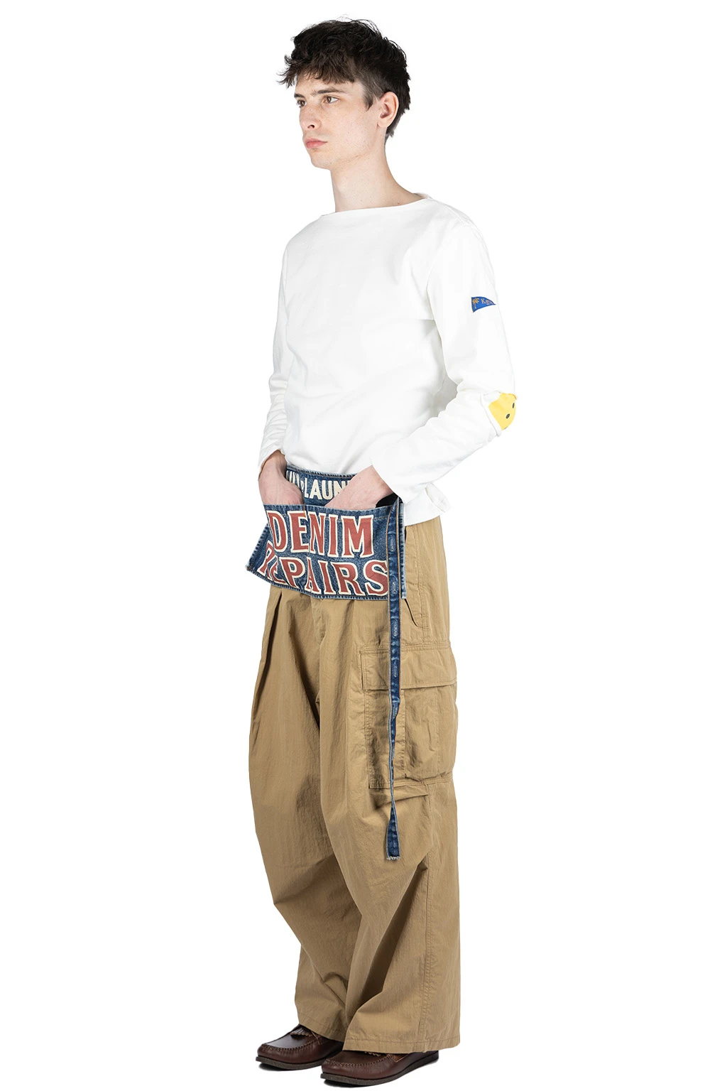 16/- Densed Jersey Elbow-Rip Boatneck Long Sleeve T – White