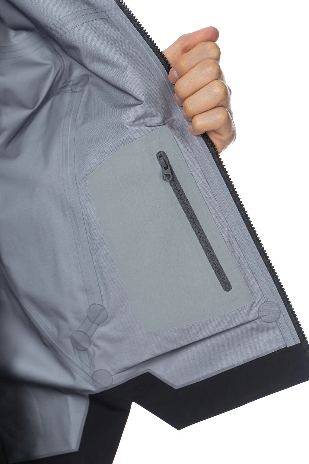 - WaterTightâ„¢ full length front zip, 2 hand pockets with hidden laminated zippers