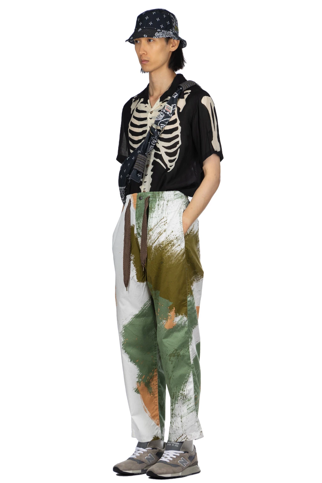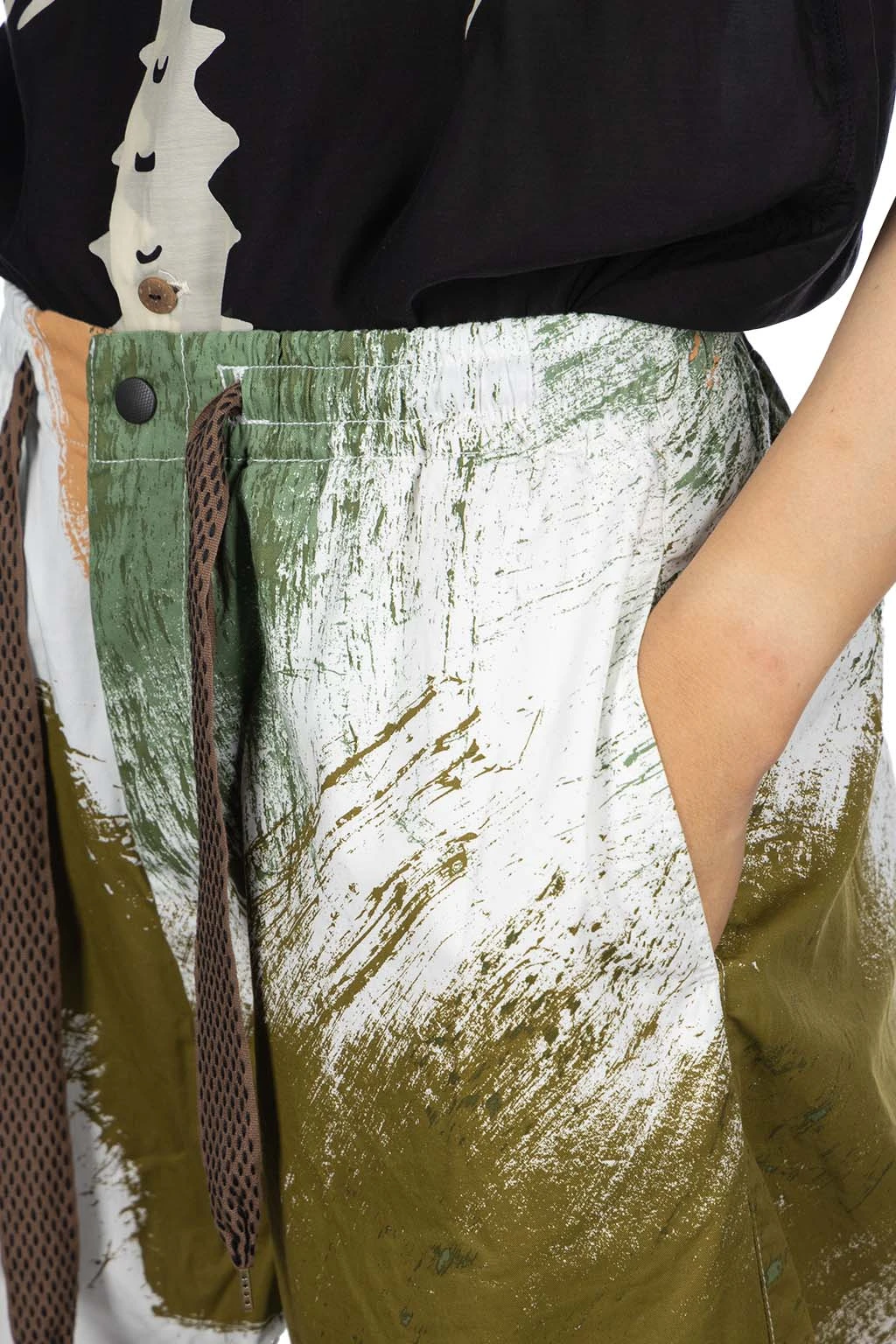 - Elastic waist with sashiko stitching drawcord