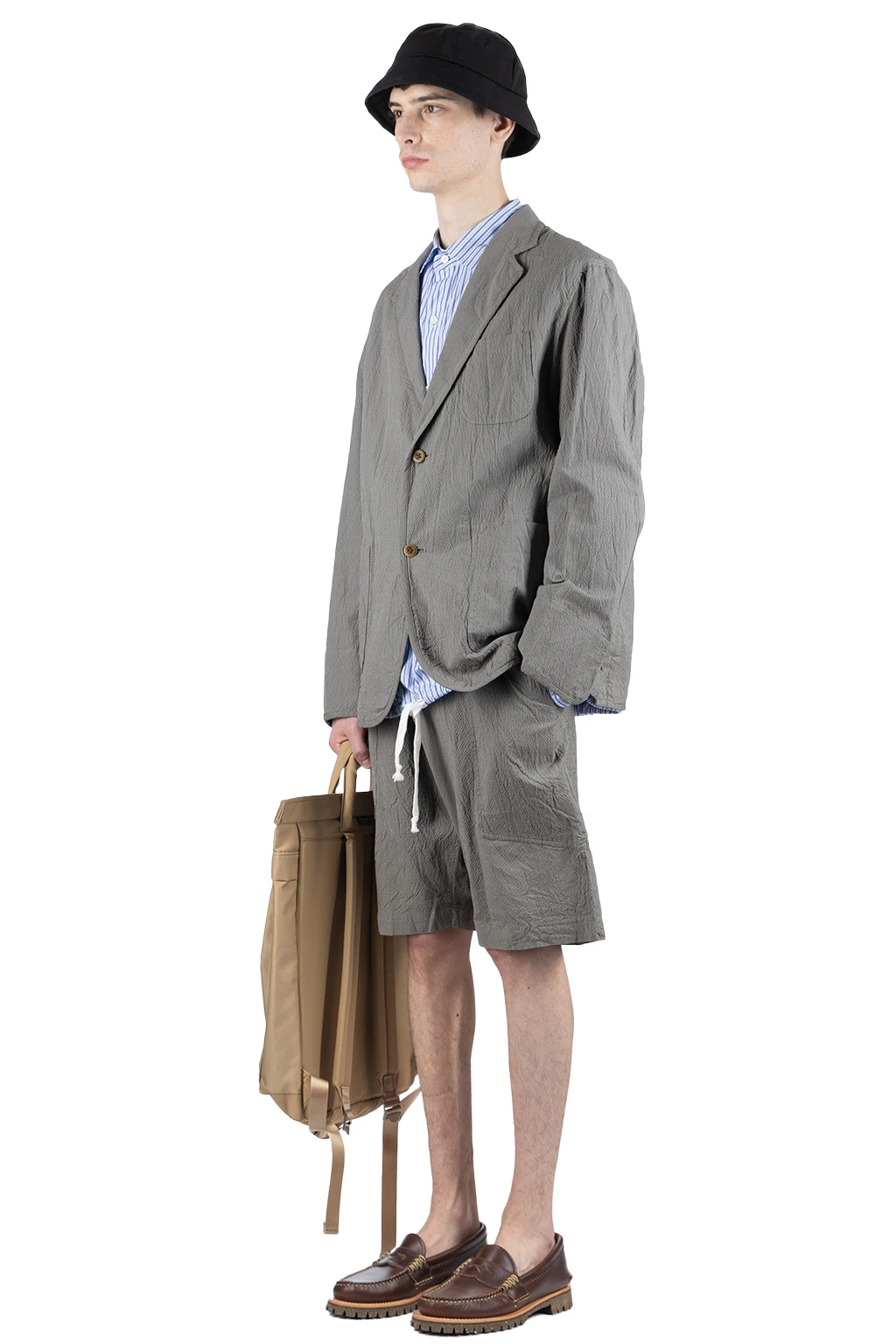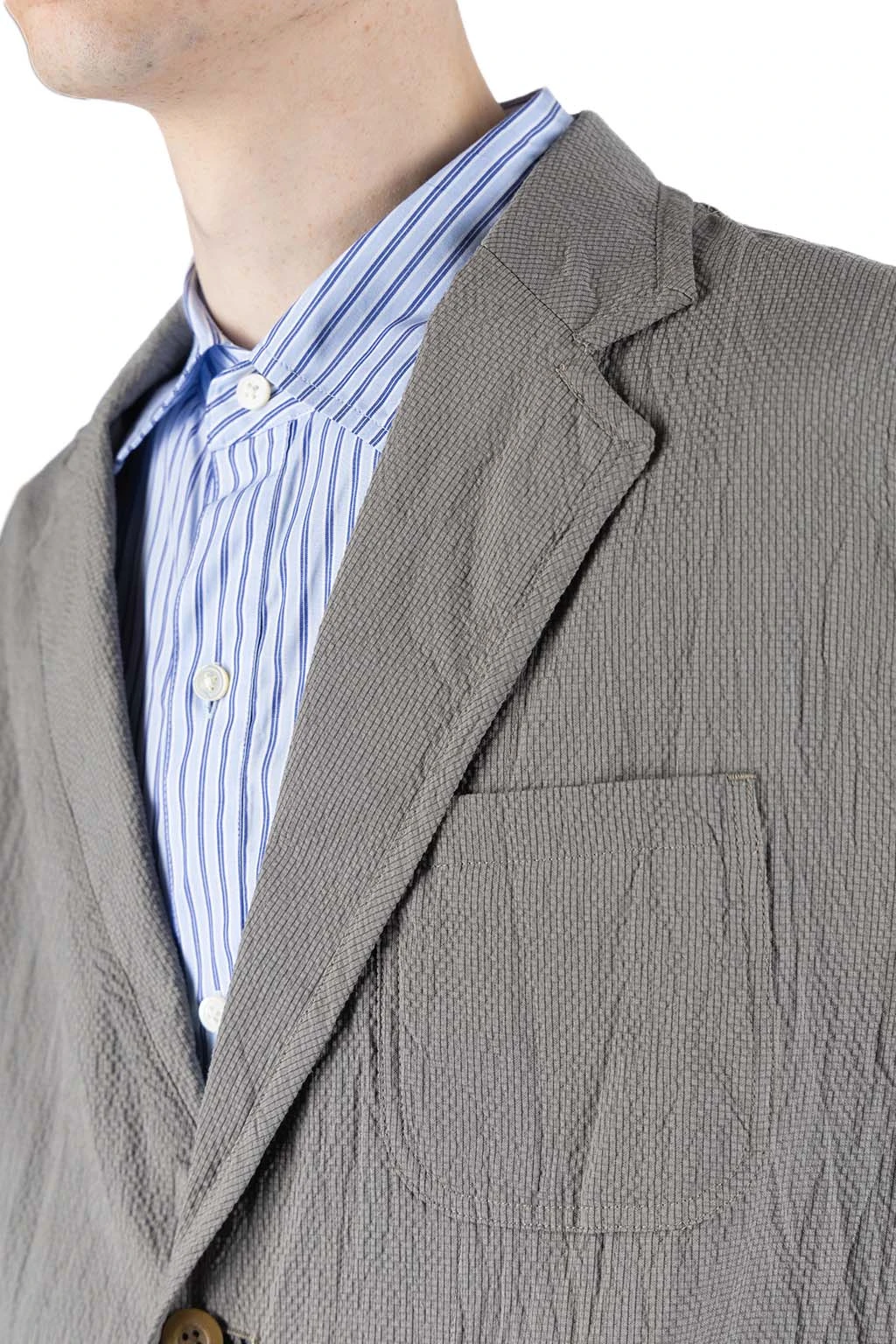 Cotton Ramie Silk 2 Button 3 Patch Pocket Piping Jacket