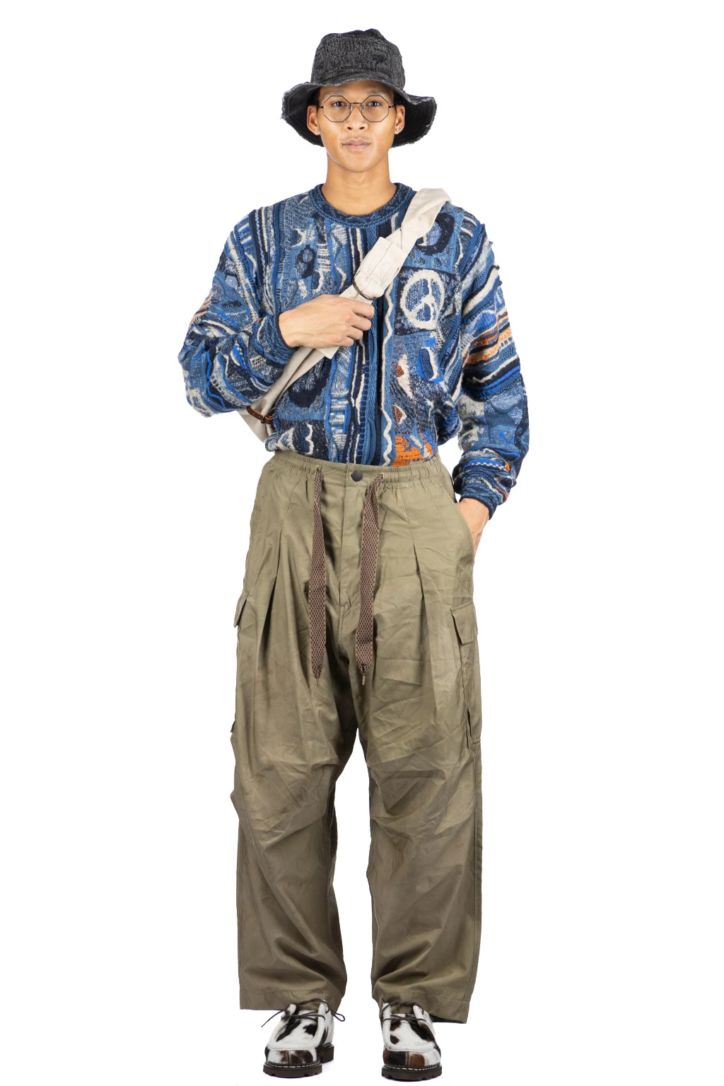 - Cargo pants with a voluminous silhouette