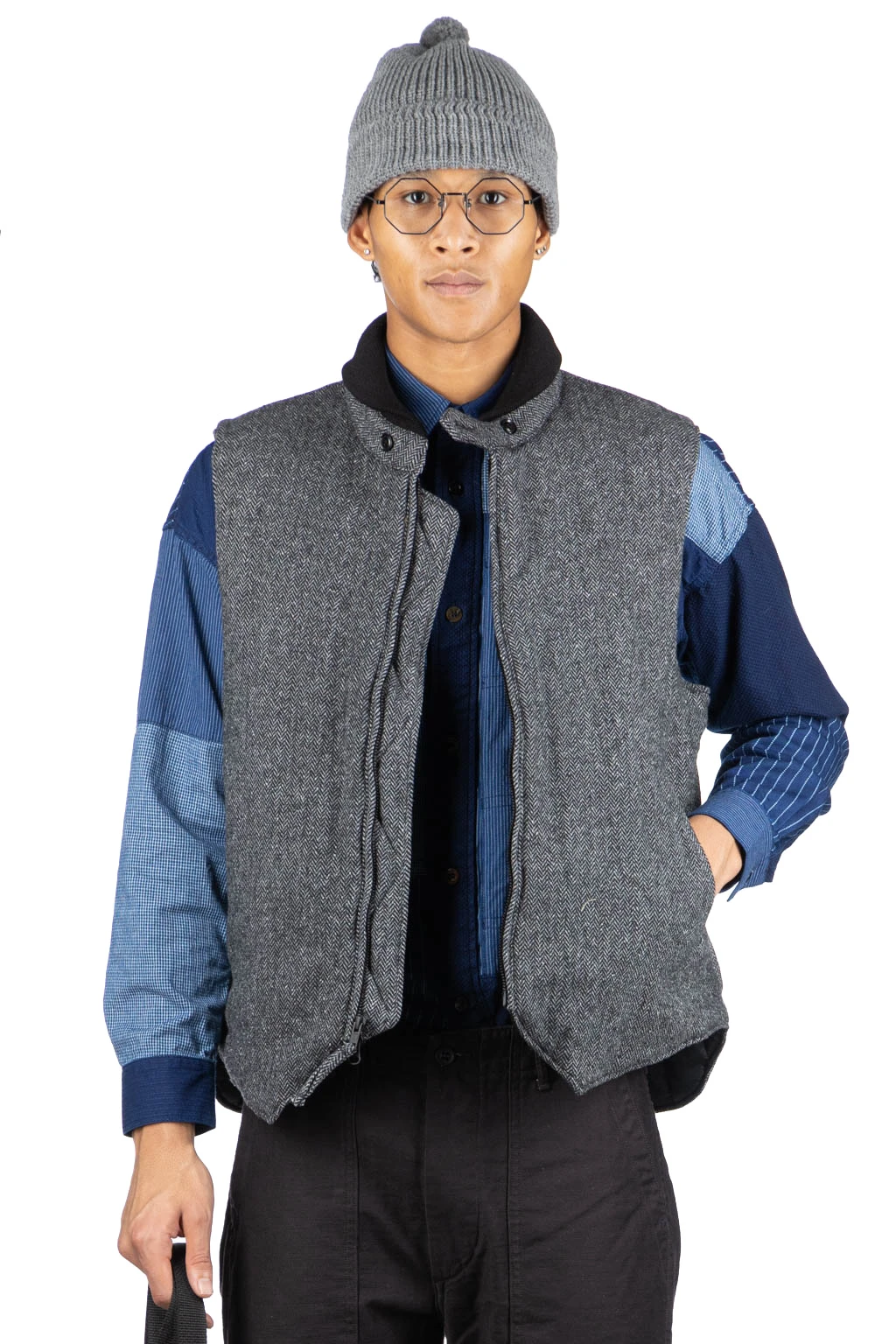 LL Vest – Grey Poly Wool Herringbone