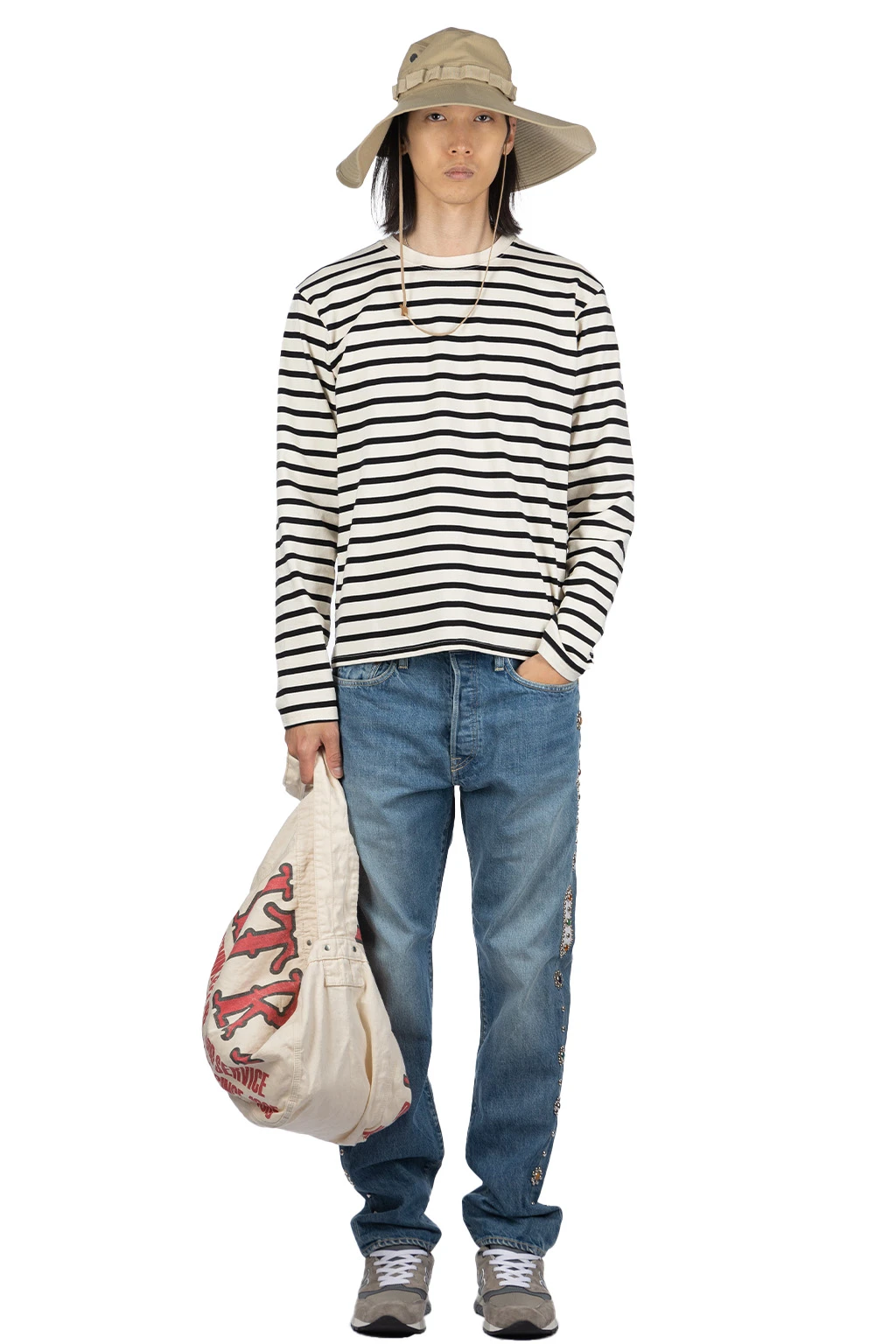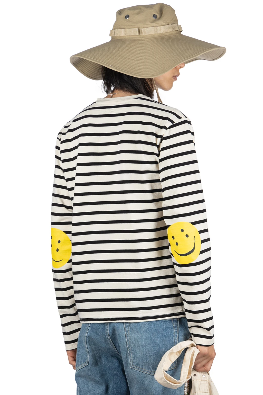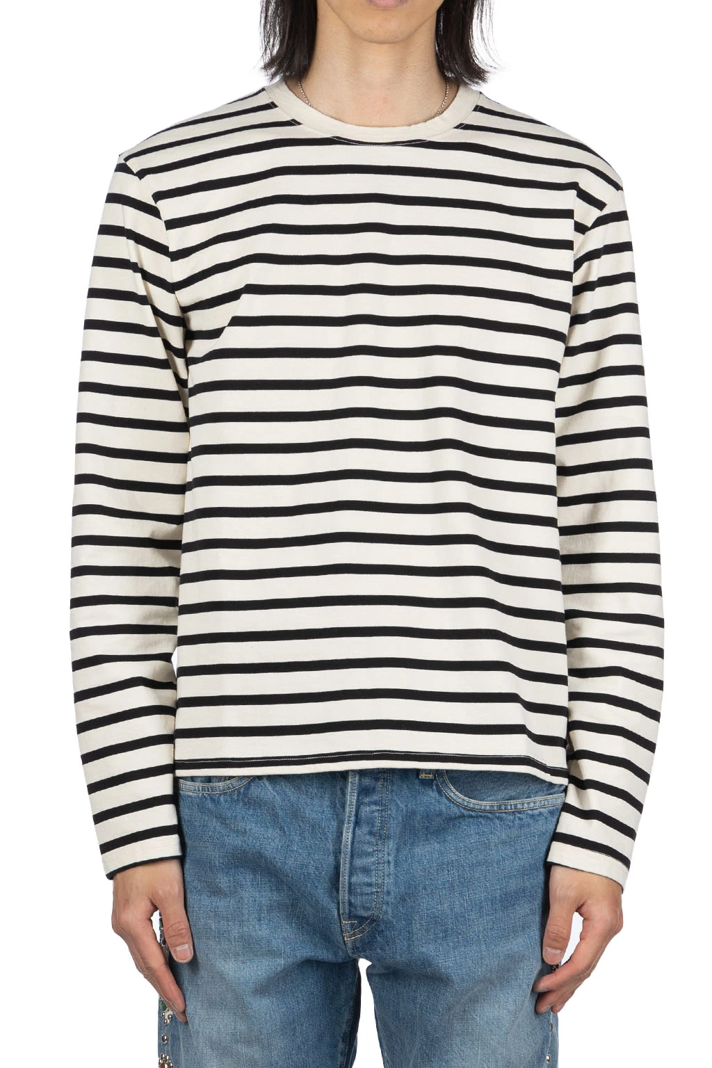 Stripe Jersey Crew LS Tee (RAINBOWY Patch) – Black X Natural